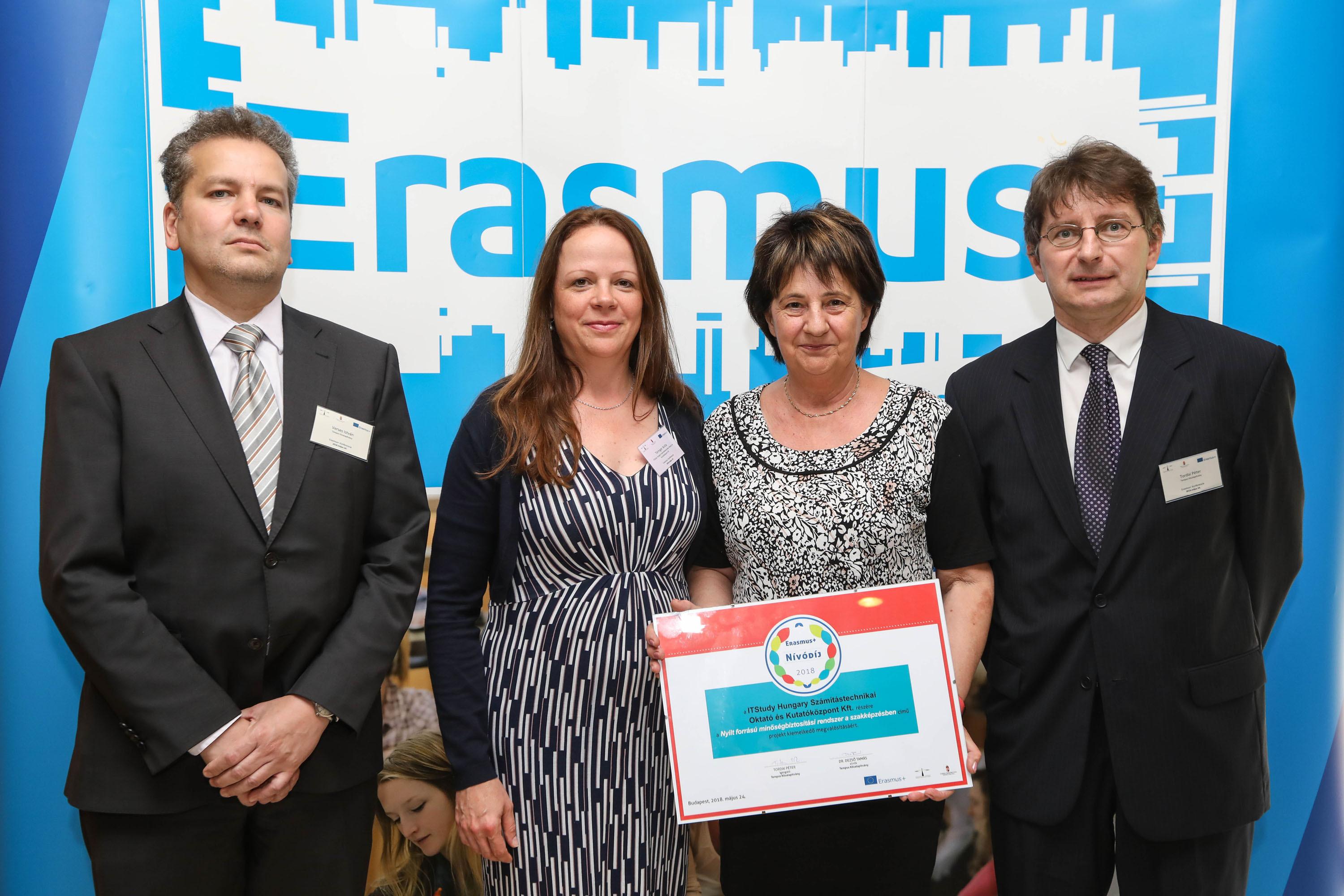 iTStudy's Director, Mária Hartyányi, received an award of excellence at the 2018 annual ceremony of the Erasmus+ national agency, the Tempus Public Foundation, in front of hundreds of teachers, principals and other education professionals. The project OpenQAsS – Open Source Quality Assurance System for European Vocational Education was selected as one of the 8 best of the year.