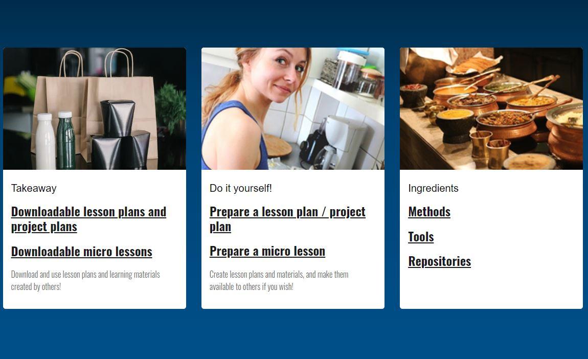 In the Ingredients section, you will find resources, digital tools and methods for creating lesson plans.